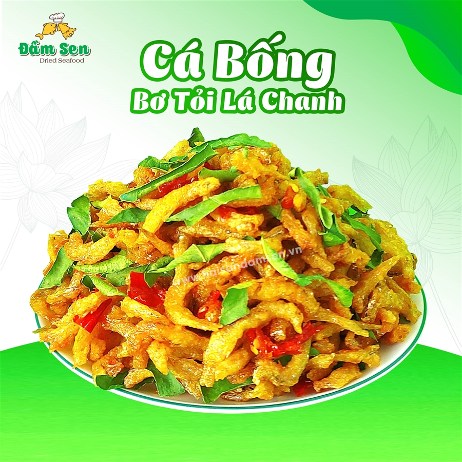 Thành phần: 85% Cá bống, 8% gia vị (đường, muối, chất điều vị mononatri L-glutamat 621, ớt, dầu ăn), 3% bột tẩm (bột chiên giòn, bột năng), 2% lá chanh, 1% bơ, 1% tỏi.